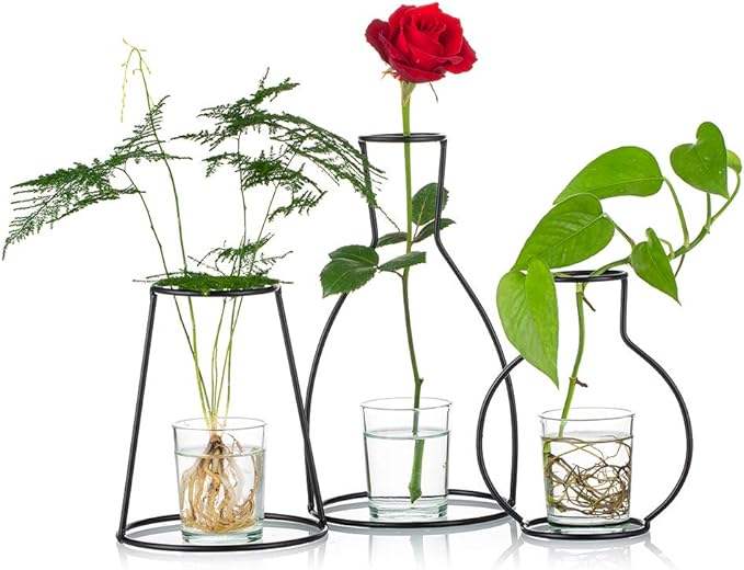 High Quality Metal Planter Set of 3 Creative Desktop Stands with Glass Cup Vases for Home Decor or Gift Decoration