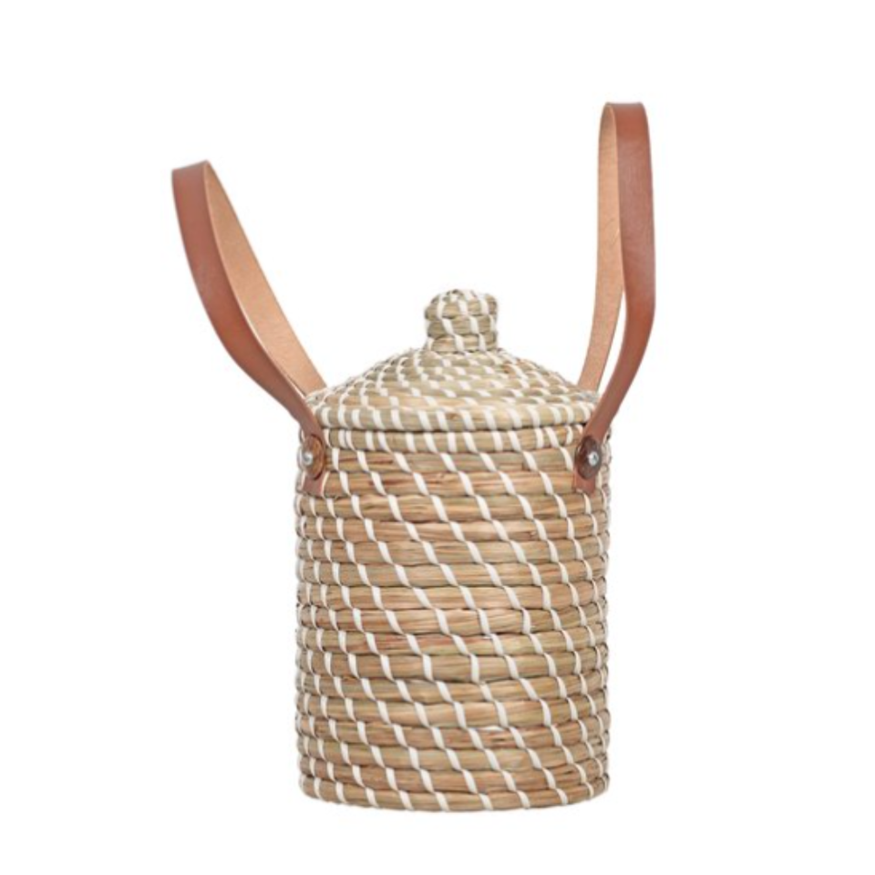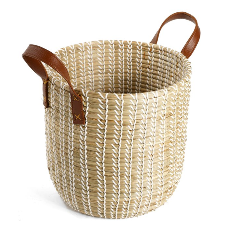 Product name:Seagrass storage basket with leather handle