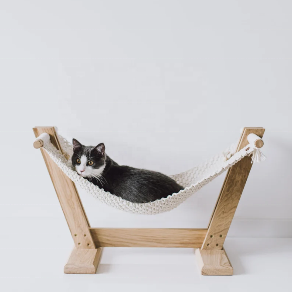 High Quality Nice Price Macrame Cat Hammock Wooden Stand 100% Safe for Animals Wholesales From Vietnam
