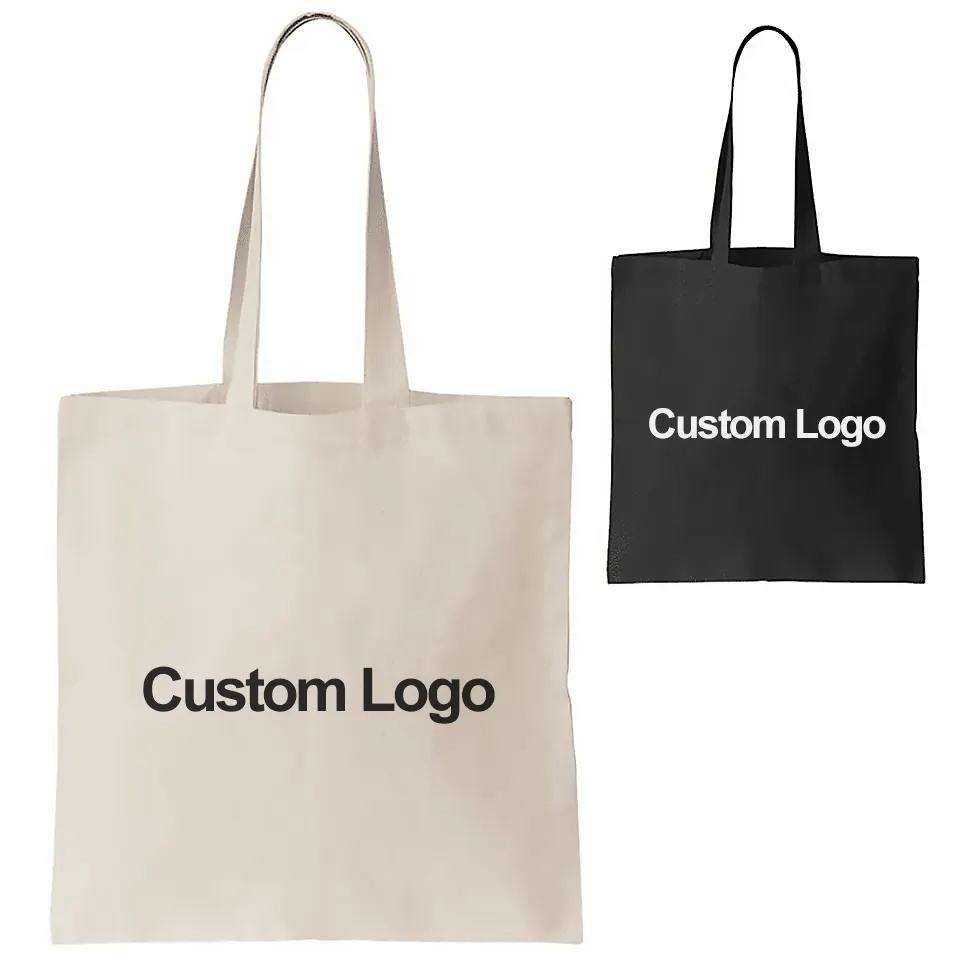High quality personalized letter reusable cotton fabric custom printed logo canvas shopping bag