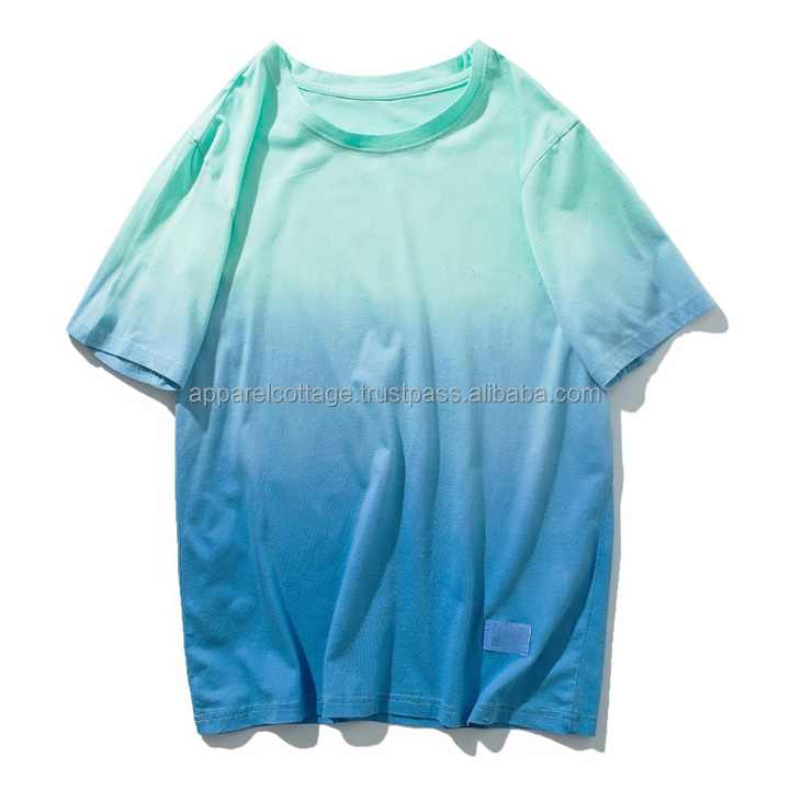 High Quality Plus Size Tie-Dye Two Tone T-Shirt Custom Logo Embroidery 100% Cotton Casual Hip Hop Men's Unisex Jersey Solid Tees