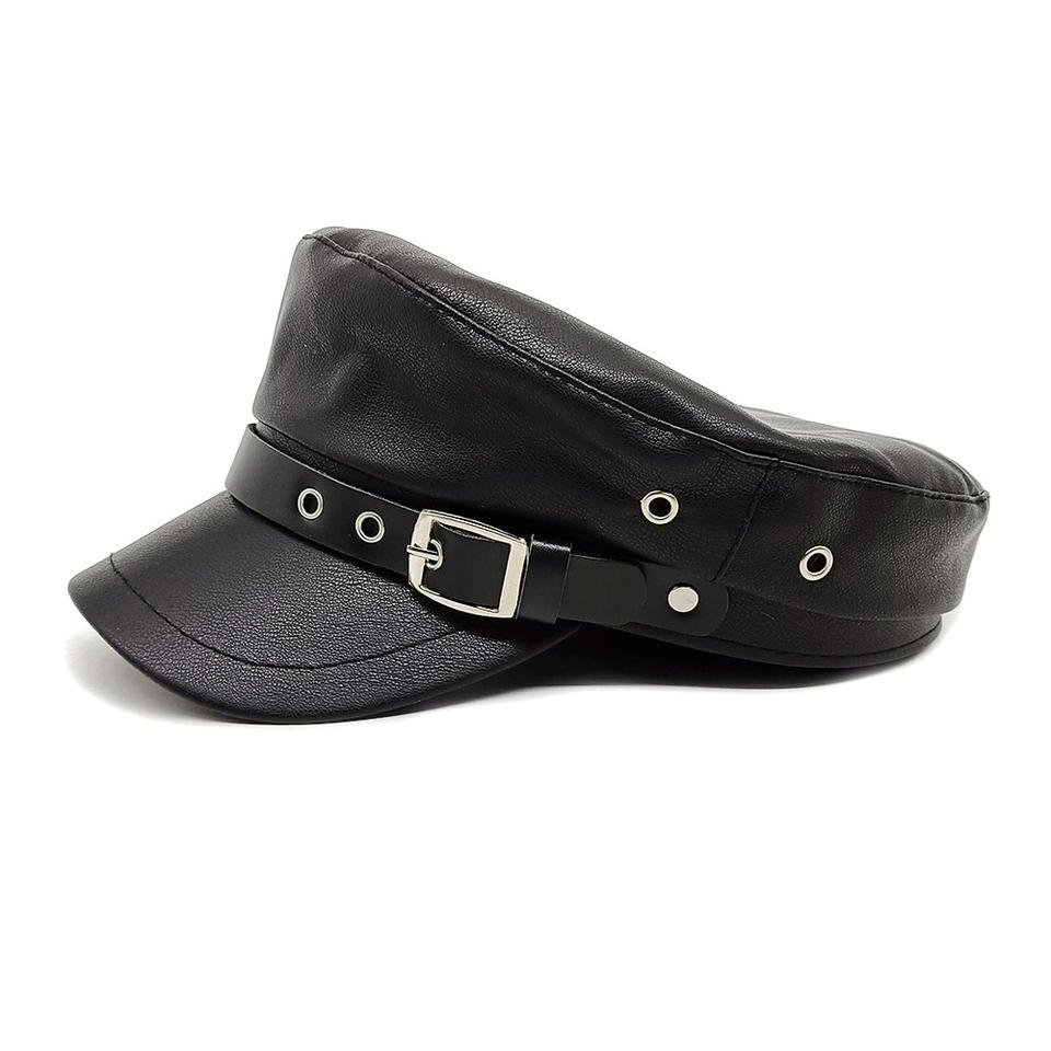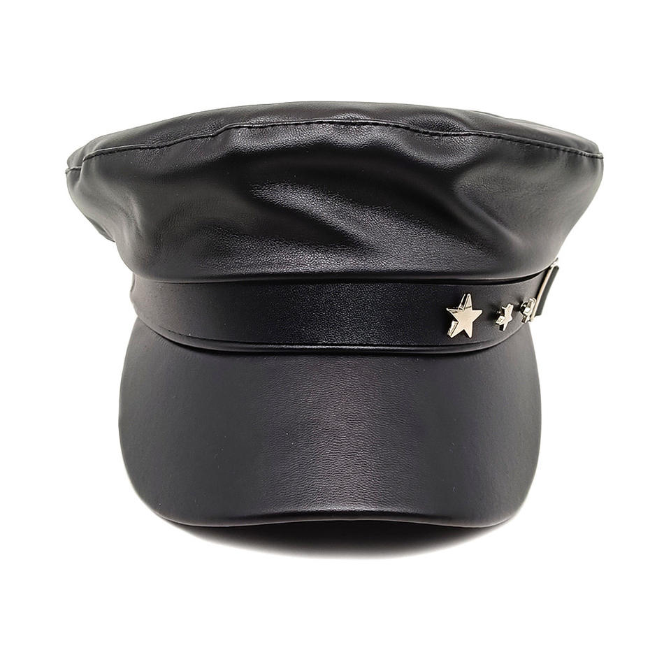 High quality pu leather black octagonal hat British autumn and winter duckbill hat female Korean version casual all-match Japane