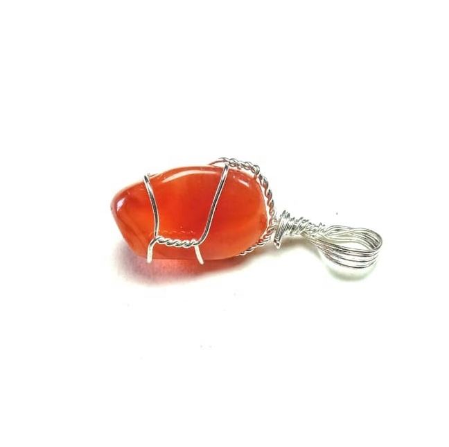 High quality red carnelian agate 3 side Wire Wrapped Pendant Classic Style Quartz Crystal pendant Gemstone Necklace wholesaler