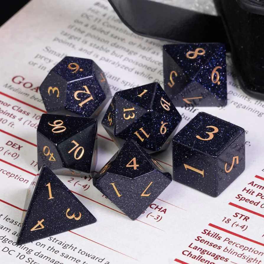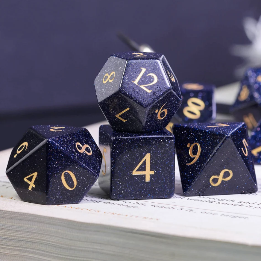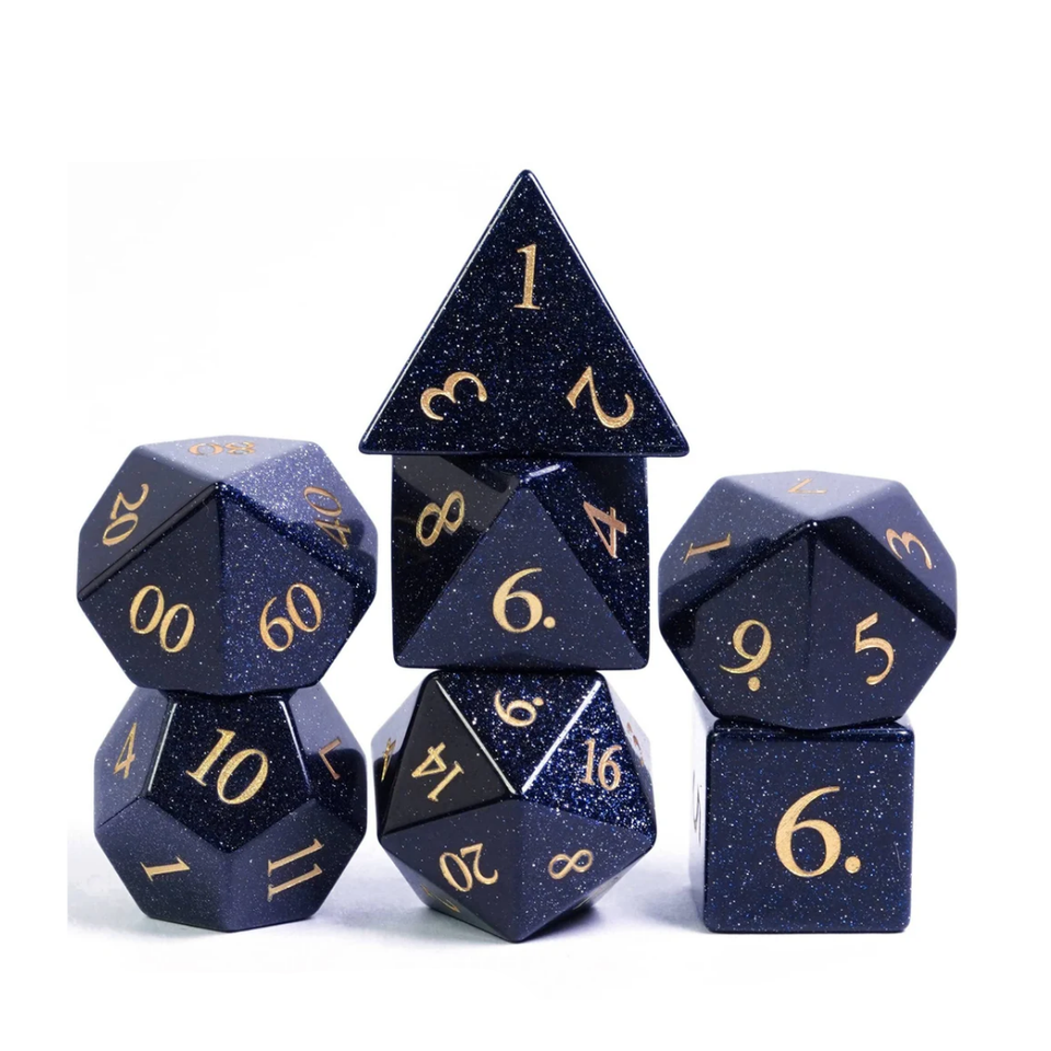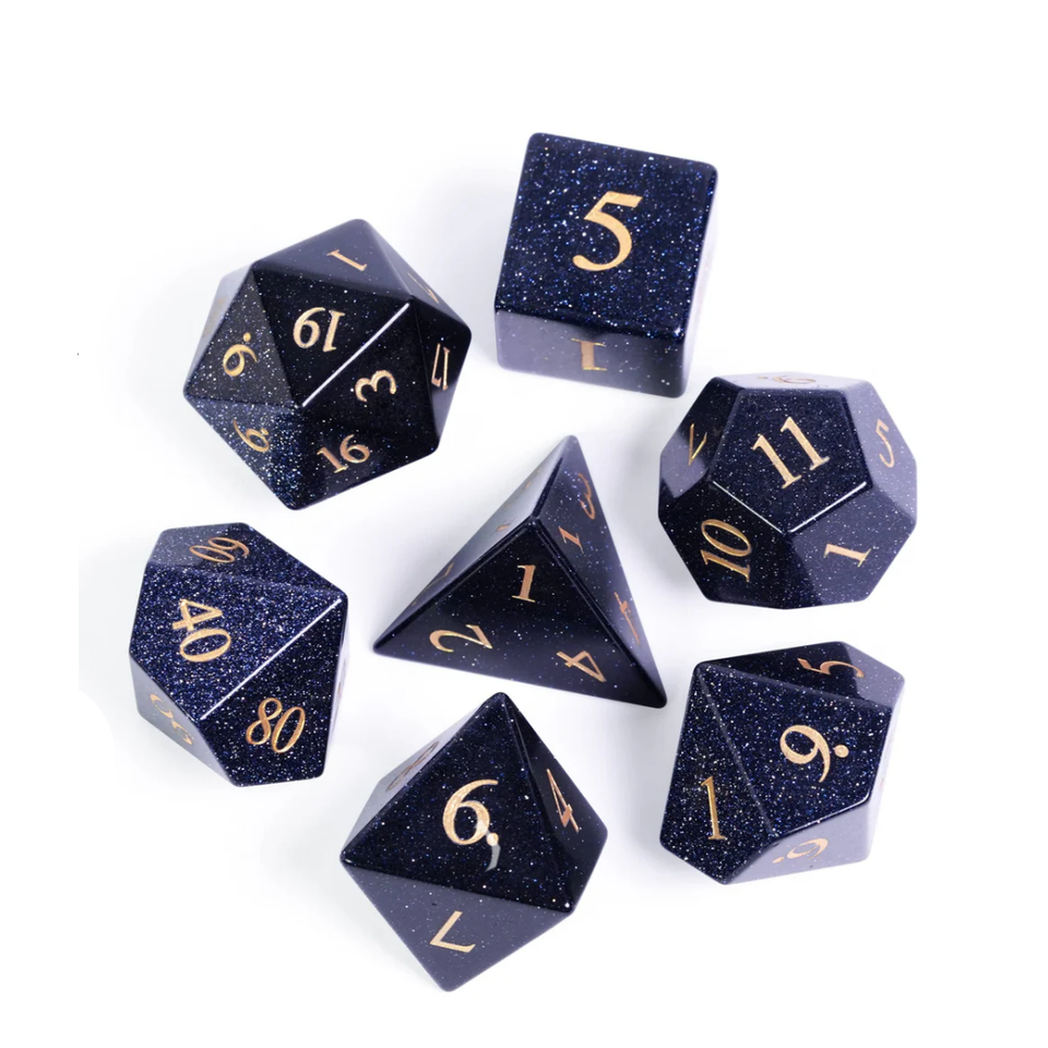 High quality stone dice Blue Goldstone natural crystal reiki healing gemstones Engraved stone custom dice set Vikings crystal