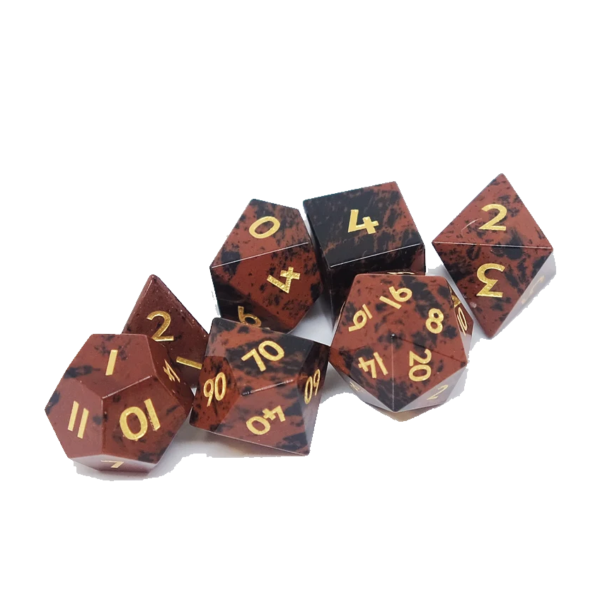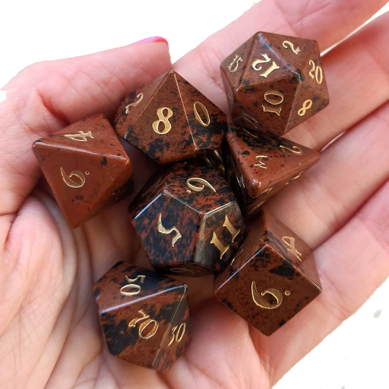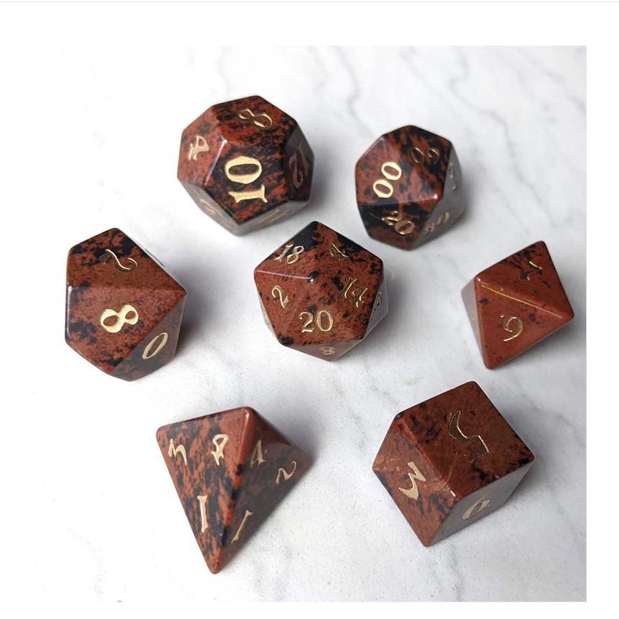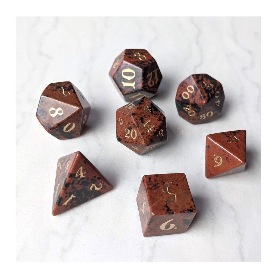 High quality stone dice Mahogany obsidian natural crystal reiki healing gemstones Engraved stone custom diceset Vikings crystal