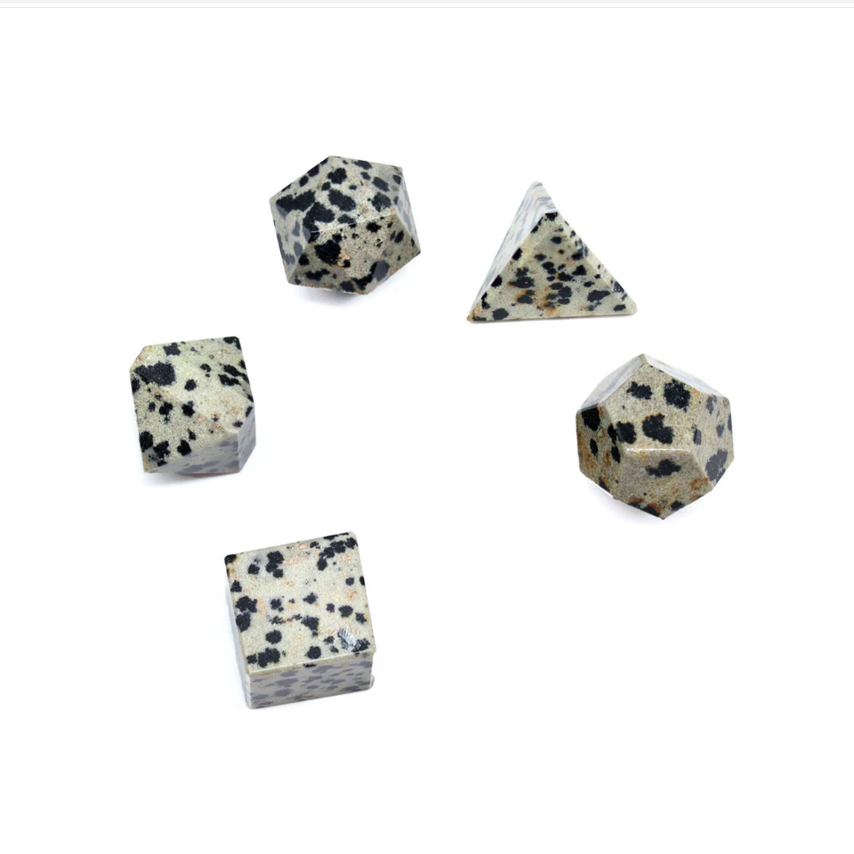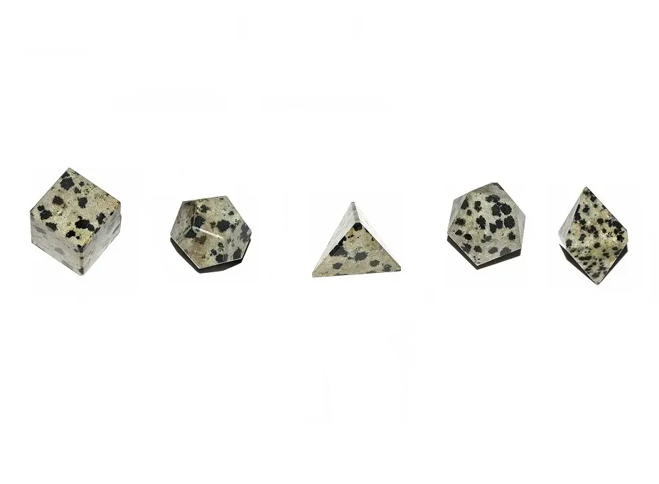 High quality stone geometry set dalmatian jasper crystal geometry set Platonic Solids sacred natural stone geometry set