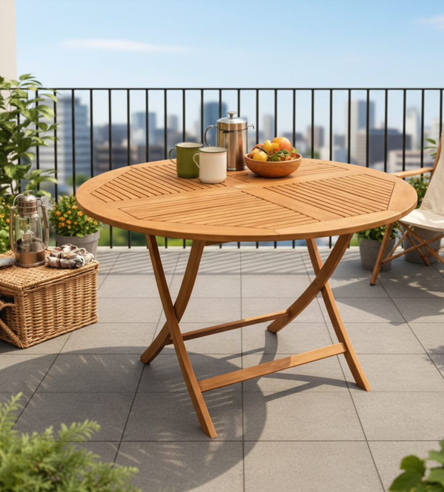 High Quality Modern Teak Round Folding Table Jepara Artisans Delivering Strong Weather Resistant Design Patio Garden Picnic Use