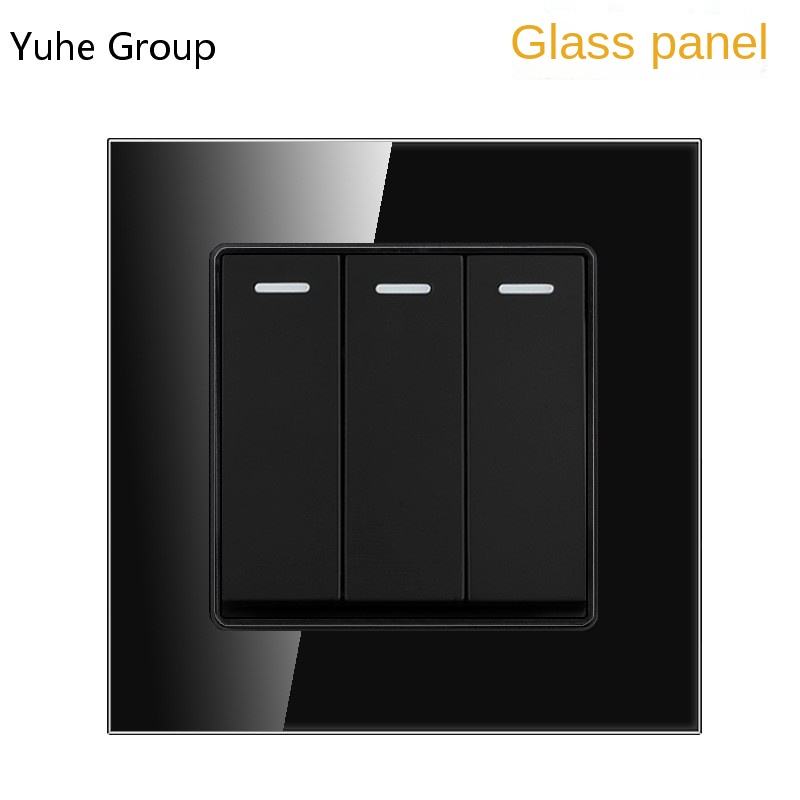 High Quality Tempered Glass Touch Panel Wall Switch Hotel Electronic Wall Switch 3-pin 1-way/2-way Switch Socket IP20 2-Gang