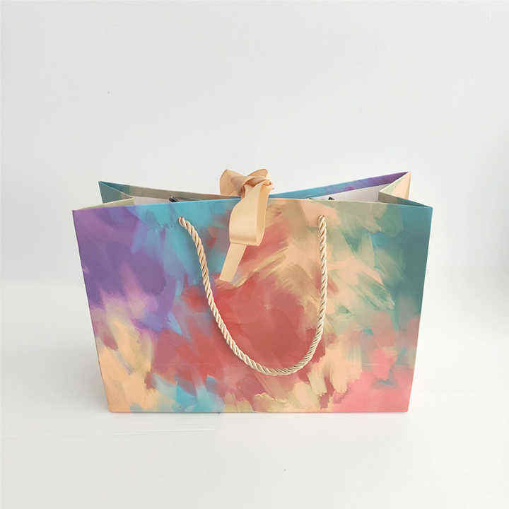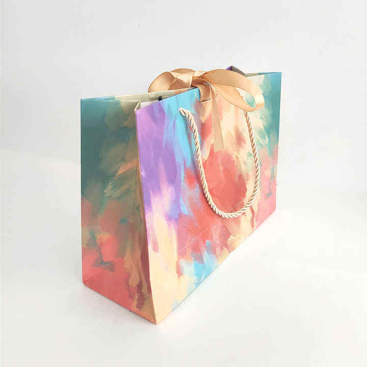 Wholesale High Quality Luxury Ribbon Handle Small Paper Gift Bags with Custom Print Logo for Jewelry Packaging