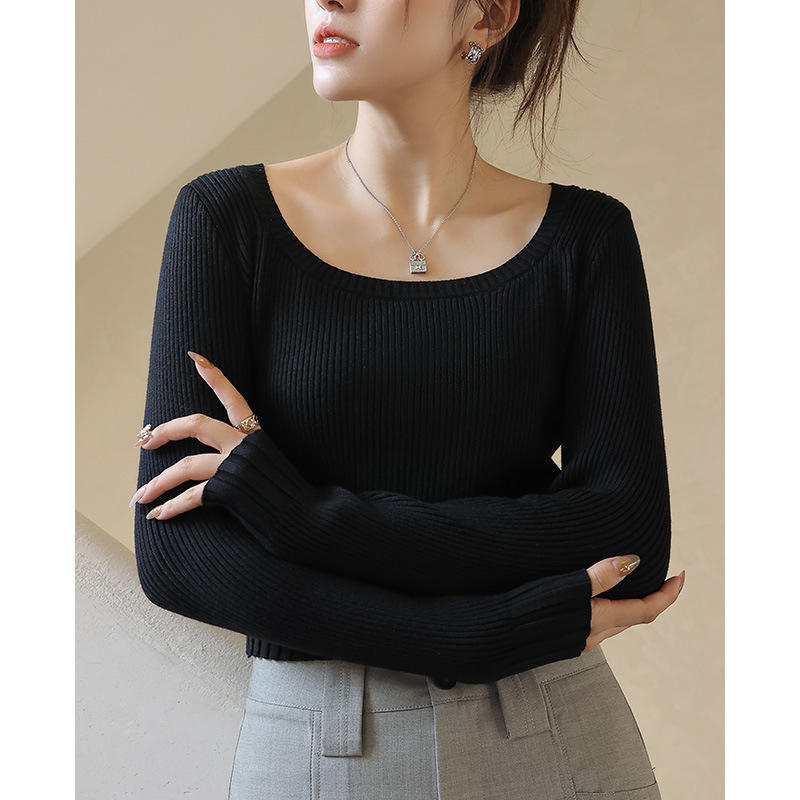 High-quality women's knitted sweater with short white sweater, slim fit bottoming shirt and long-sleeved top