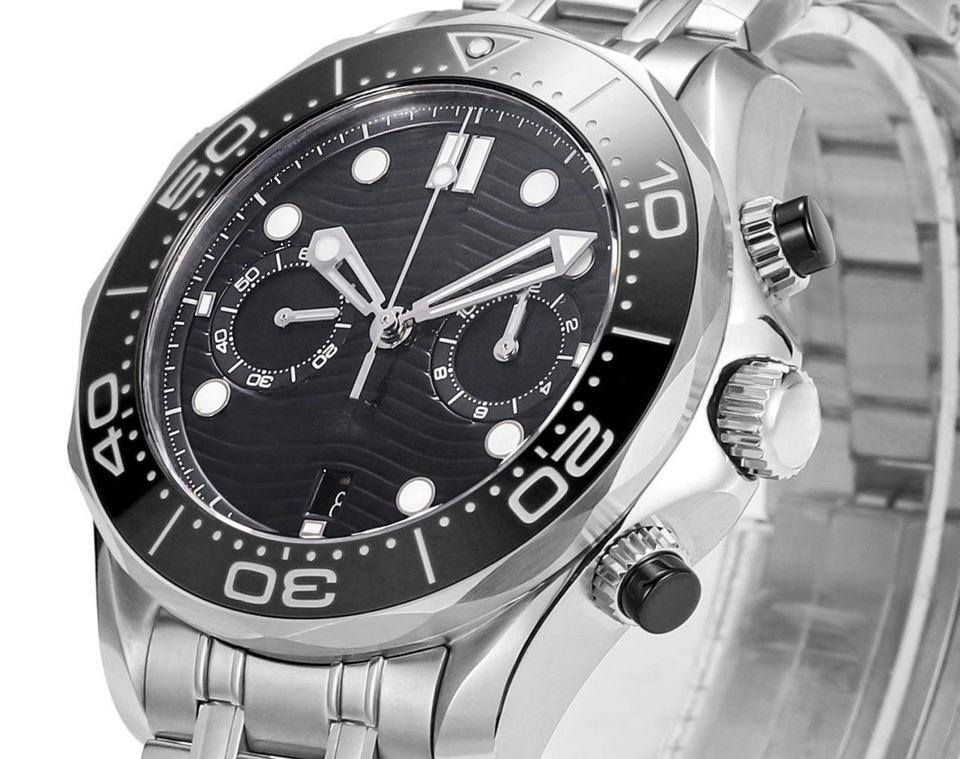 High-quality44-millimeter sapphire crystal waterproof diving watch with 300-meter timing function and rubber black ceramic bezel