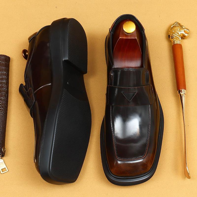 High-top shiny leather men's square-toe black business casual one-piece loafers