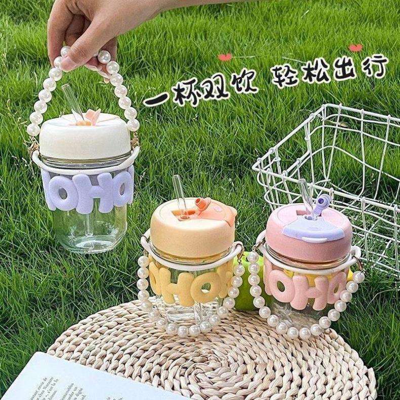 Product Name:High-value Cartoon Glass Pearl Chain Cup Letter Glass Cold Drink Cup