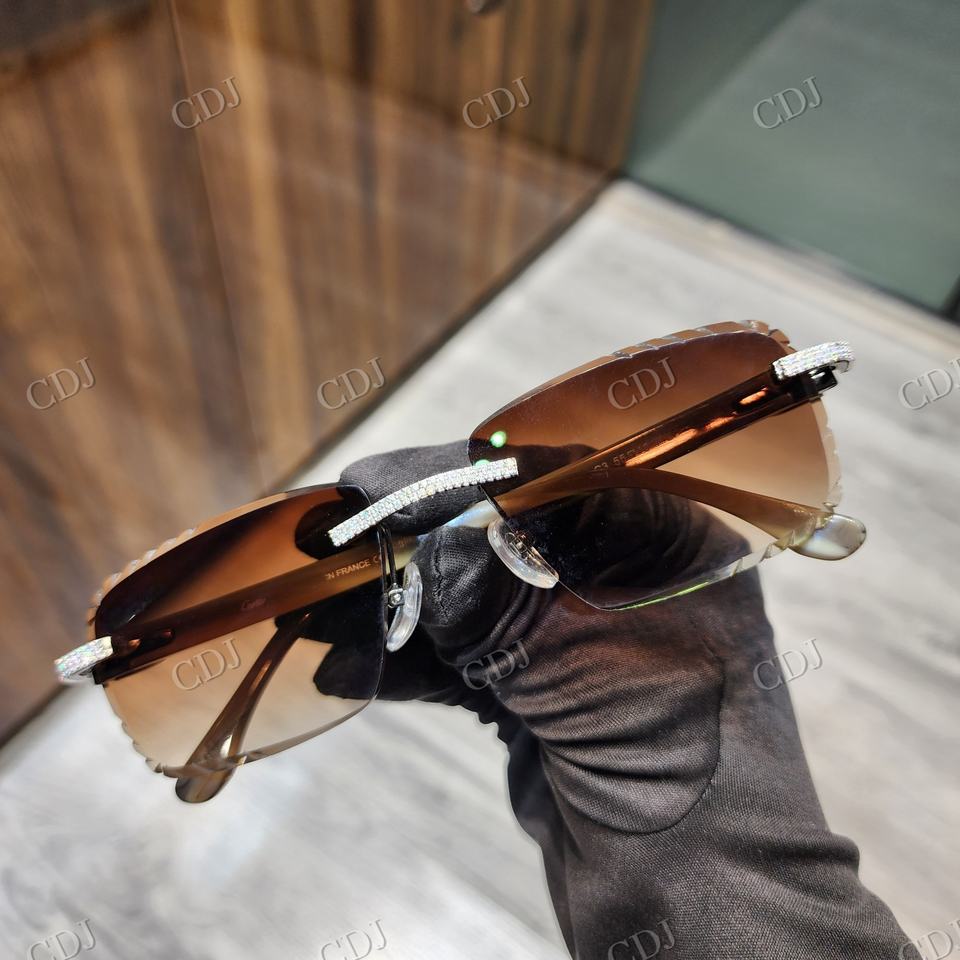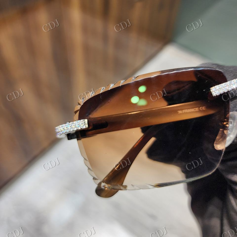 Highest Quality Brown Shades Diamond Cut Moissanite Studded Fully Iced Out Sunglasses for Wholesale Price at Indian Manufactures