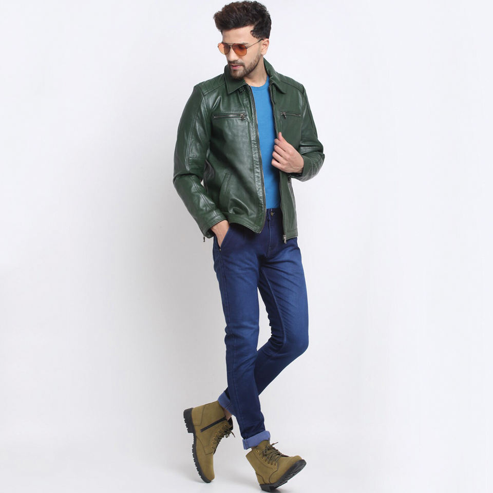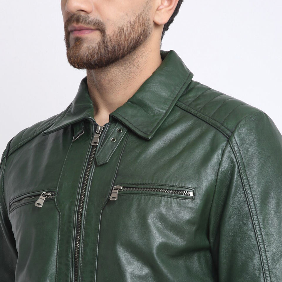 Highest Quality Cowhide Leather Biker Jacket, In Green Color Best Material Men Fashion Motorcycle Apparel BY AMAZING INDUSTRIES