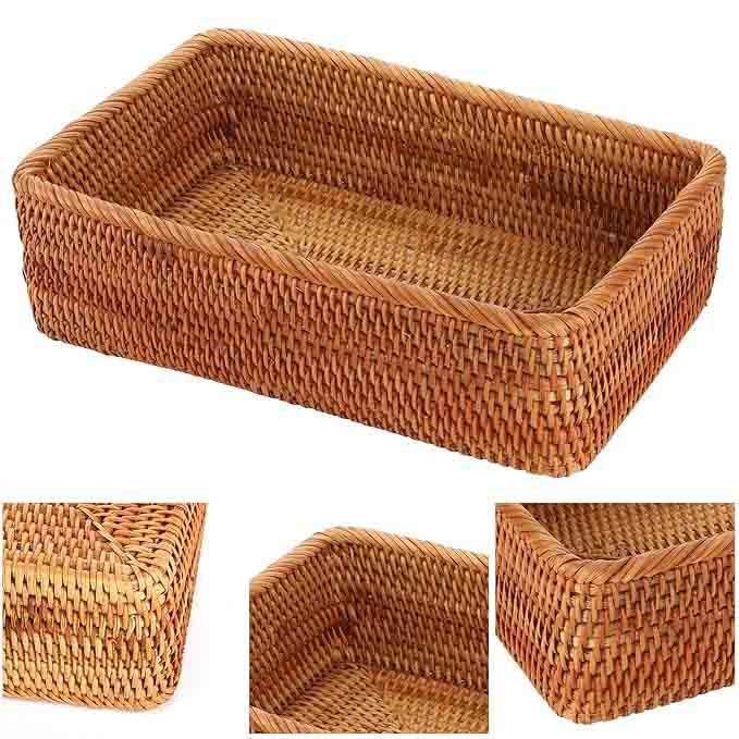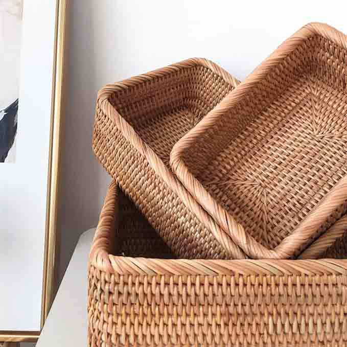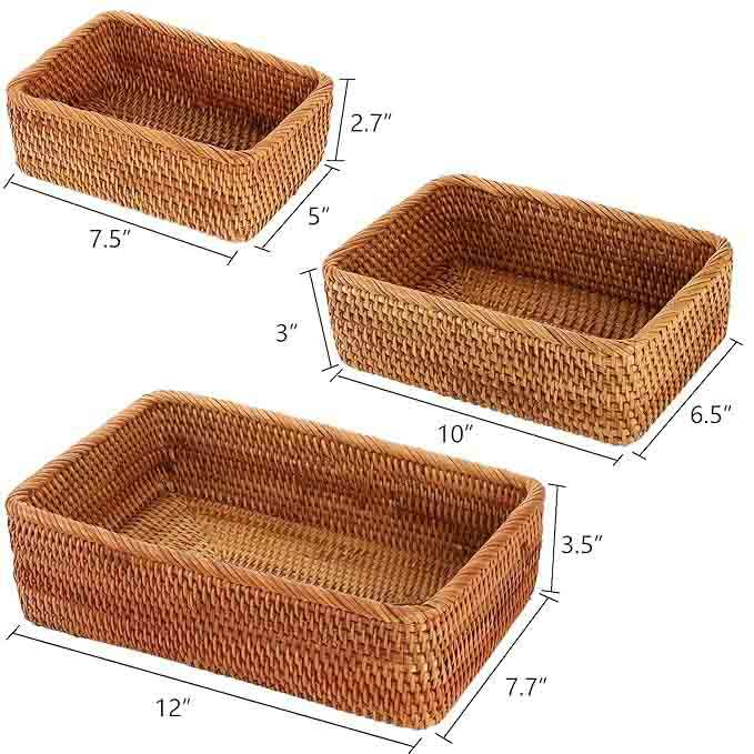 Highest Quality Handmade 3pcs Rattan Storage Baskets Popular Hot Selling Rectangular Wicker Basket Organizer Tabletop Decoration