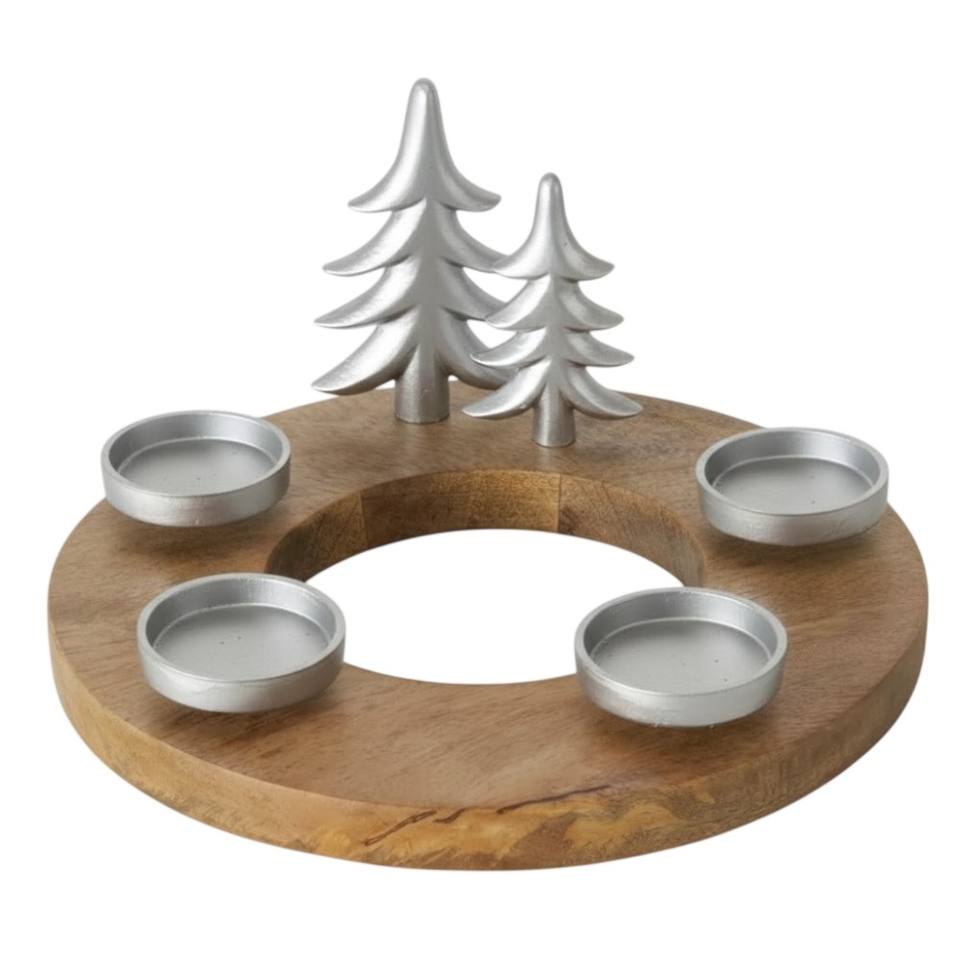 Highest Quality Mango Wood & Metal Christmas Tree Table Topper Centrepiece Pillar Candle Holder Stunning Xmas Decor On Sale