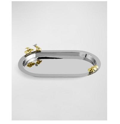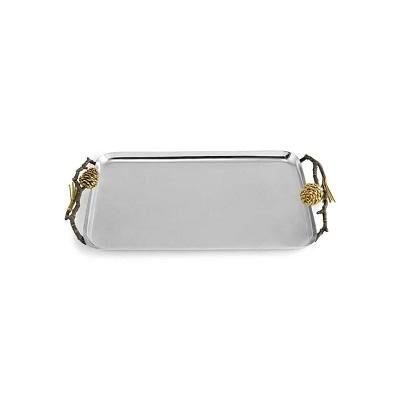 Highest Quality Silver Plated Rectangular Tray with Round Handle Large Serving Tray Plant Pattern for Valentine's Day MOQ 20pcs