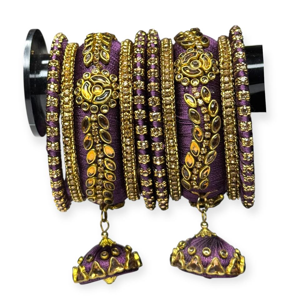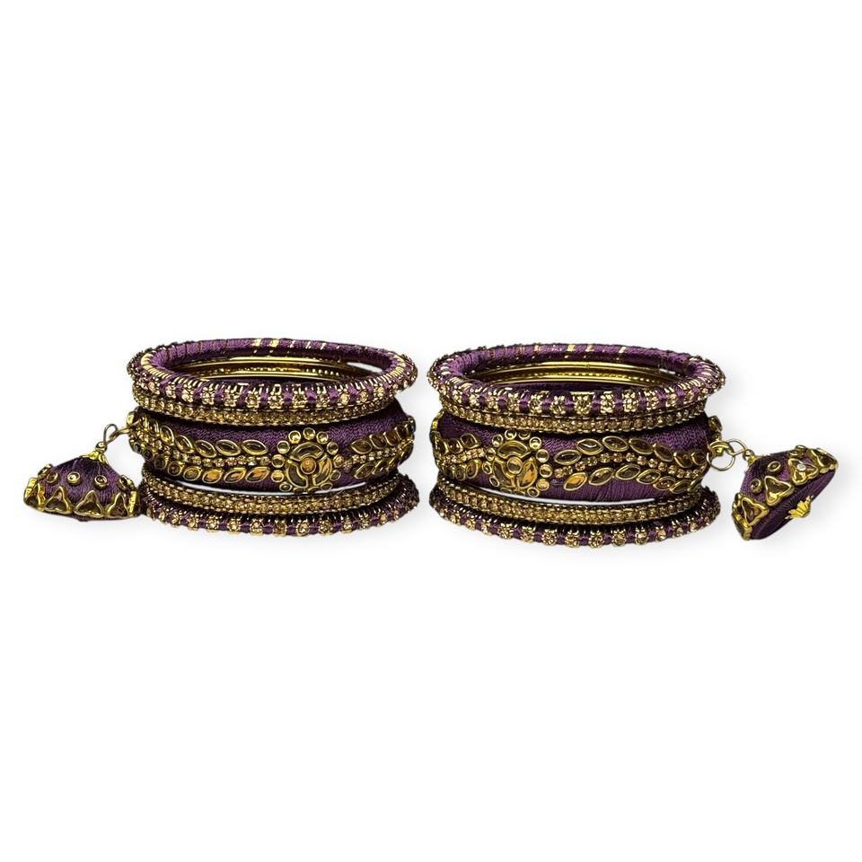 Highest Selling Purple Gold Plated Premium Imitation Thread Pearl Bangle Set Trendy Wedding Festive Wear Stackable Bangles