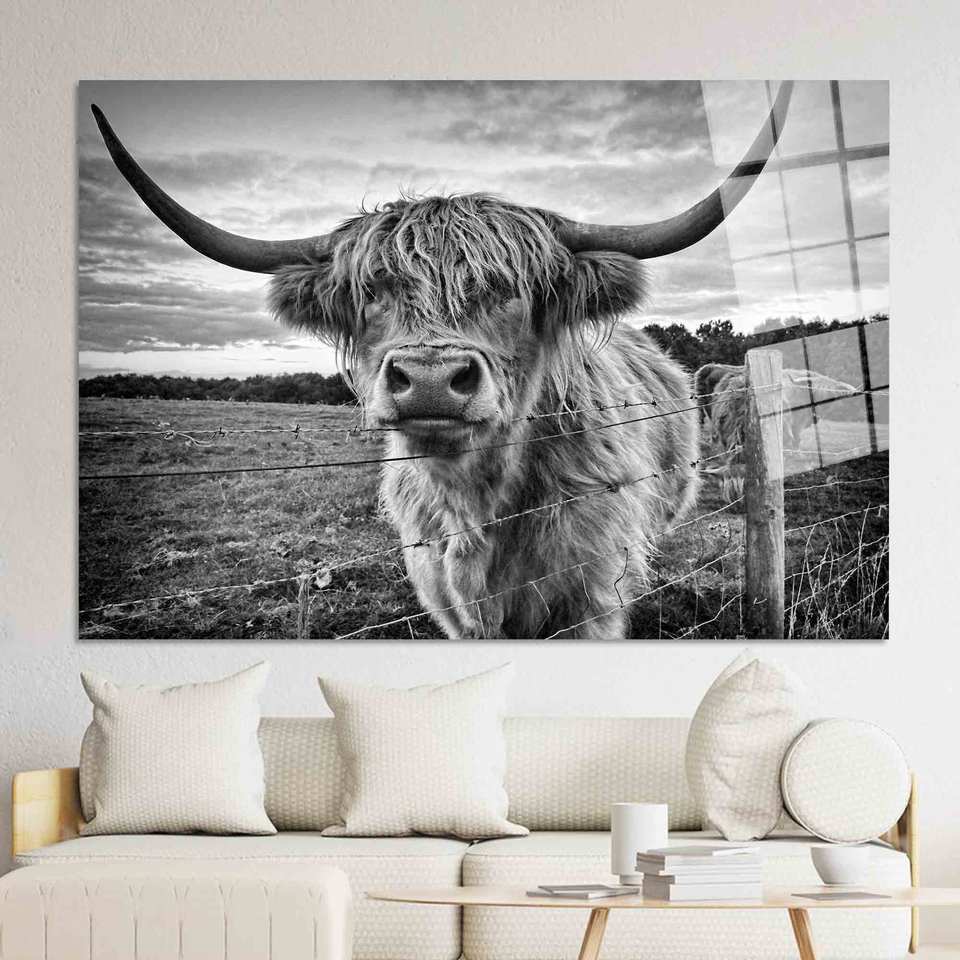 Highland Cow Canvas Wall Art: Printed Longhorn Cattle Decor,TEMPERED GLASS ART