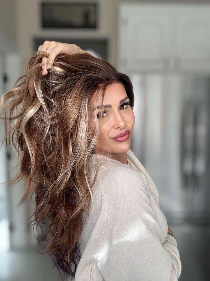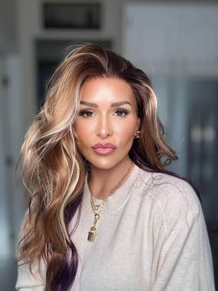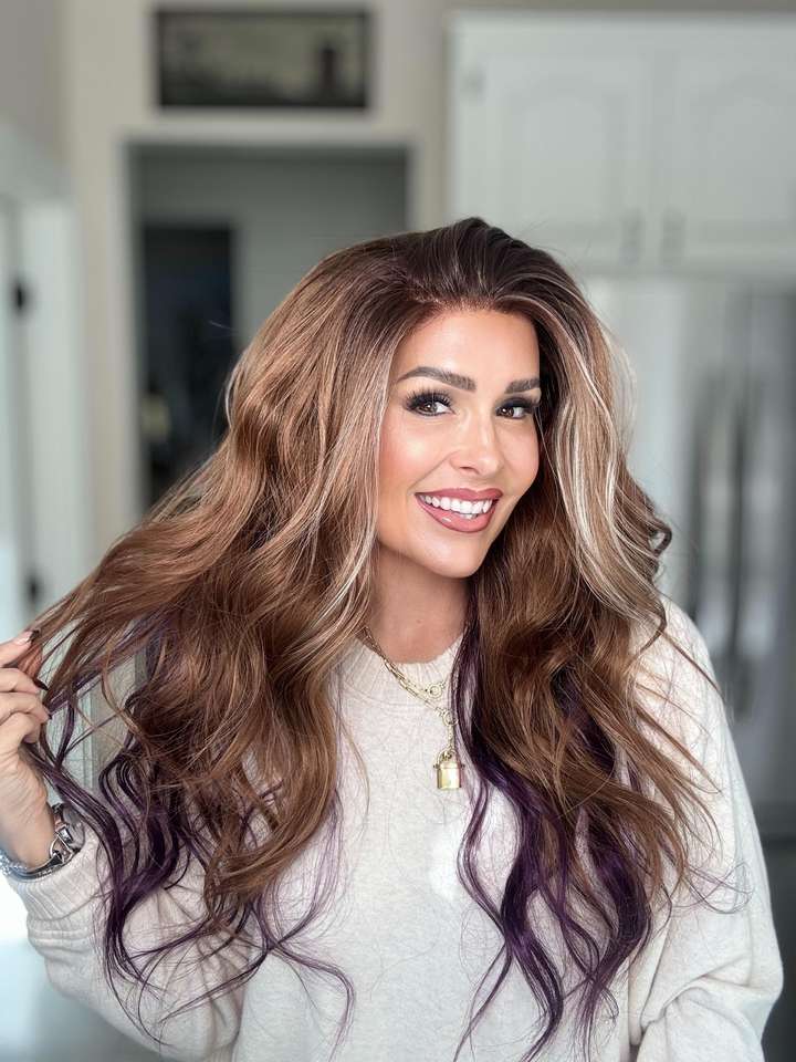 Highlight Dark Brown With Purple Cheap Premium Synthetic Hair 13x4 Lace Middle Part Highlight Wigs for Black Women