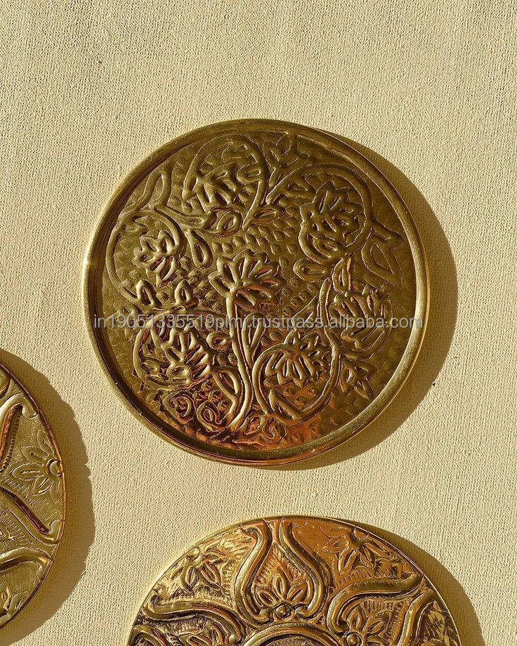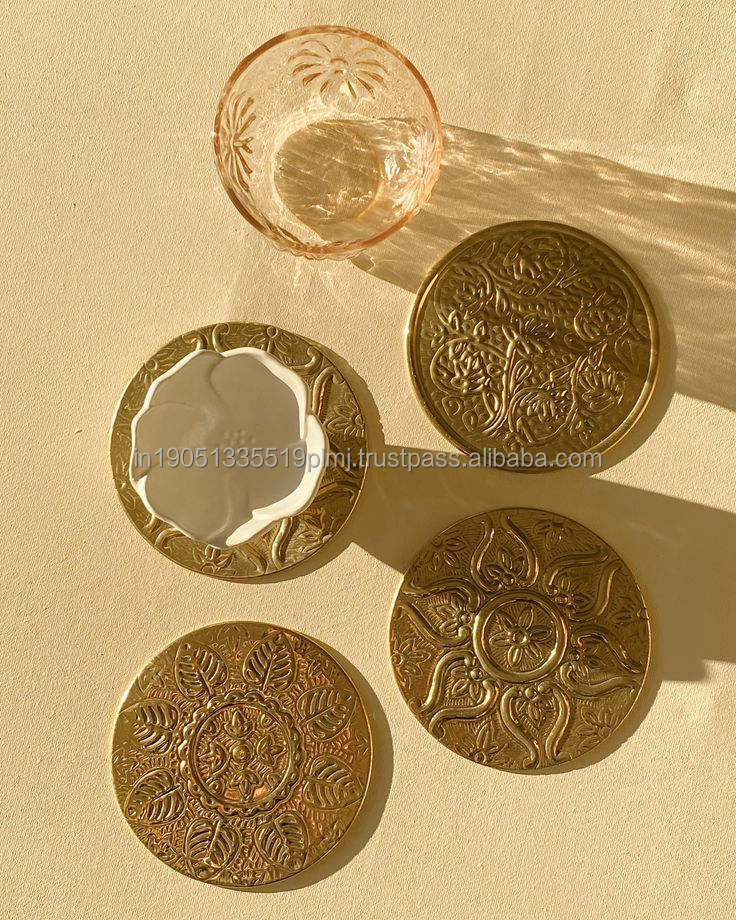 Highly Customized Wholesale Handmade Golden Metal Art Tableware Aluminum Coaster for Home Decor Sublimation Coaster &Pads