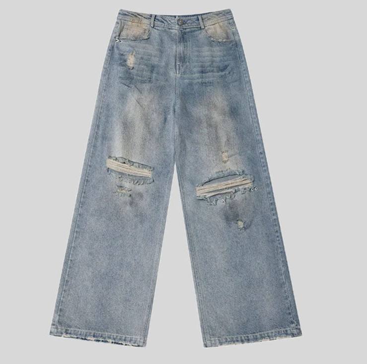 Highly Demanded Men's Elastic Waist Jean Pants Cotton Straight Baggy Street Style Breathable Denim Embroidery Patch Loose Fit