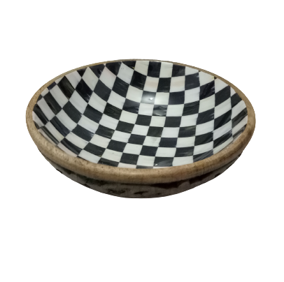 Highly Durable Eco-Friendly Custom Logo Fancy Design Polished Acacia Wood Salad Bowl Black White Sticker Printed