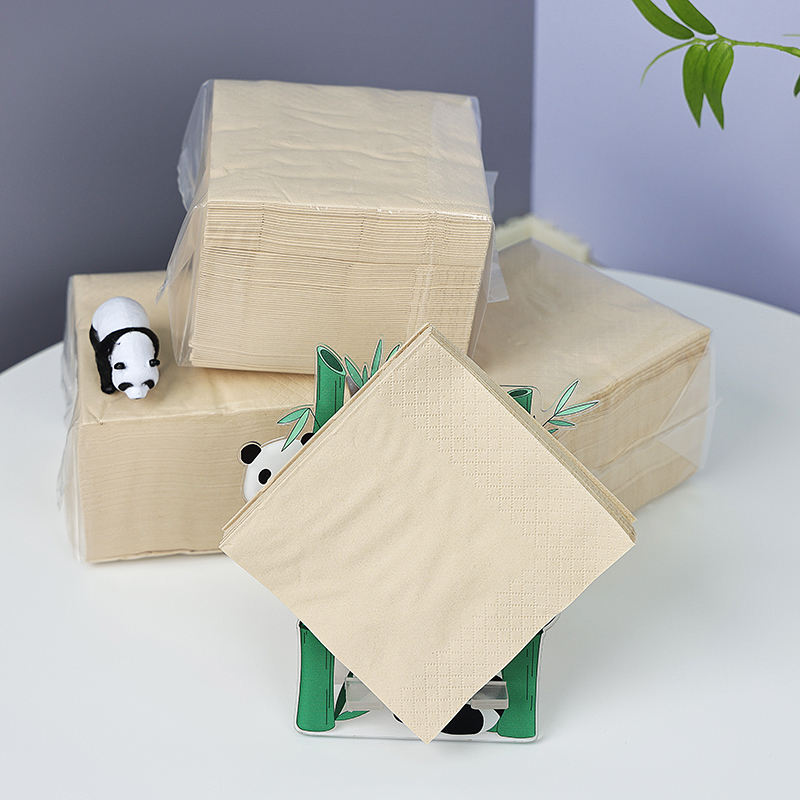 Highly soft and absorbent double-ply facial tissue for restaurants and cafes made from bamboo pulp in natural color