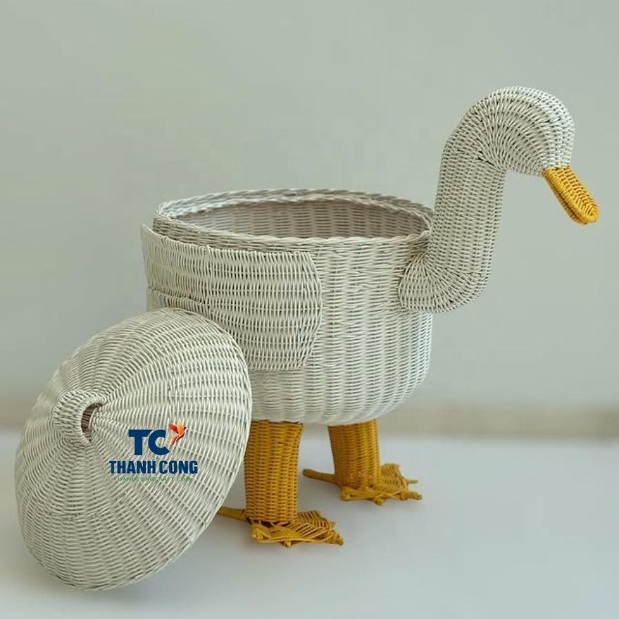 Hight Quality White WICKER GOOSE BASKET with Lid Handmade Wicker Animal Basket Nursery Decor Basket Animal Shape Storage Bin