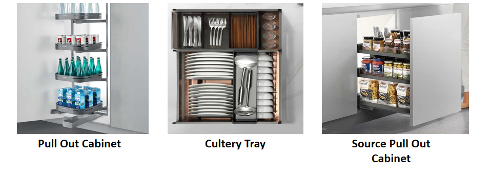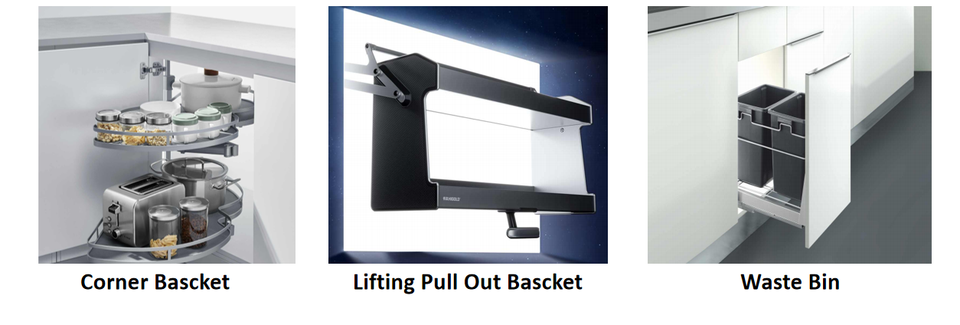 Accessories:Backsplash, Drawer Basket, Drawer Slide, Faucet, Handle & Knob, Hinge, Lazy Susan Storage, RICE BOX, Sink, Toe Kick, Waste Container