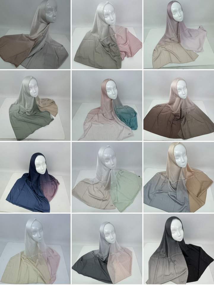 Fashion Gradient Color Satin Hijab With Diamond Muslim Women Scarf Shawl Chiffon Hijab With Stone