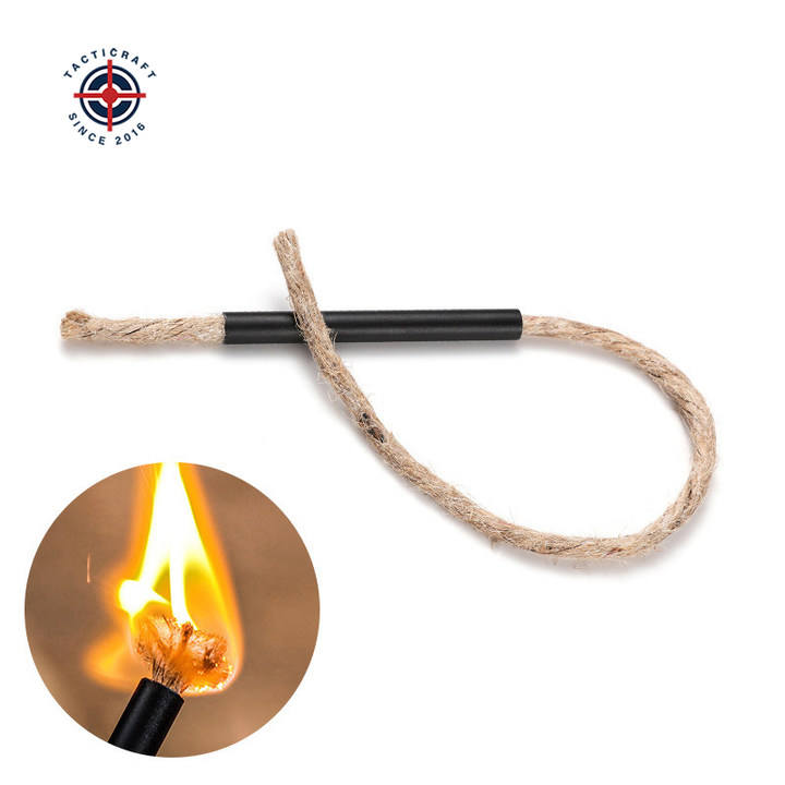 Hiking Camping Survival Matchstick Hemp Wick Tinder Paraffin Fire Starter Rope with Aluminum Hex Bellow
