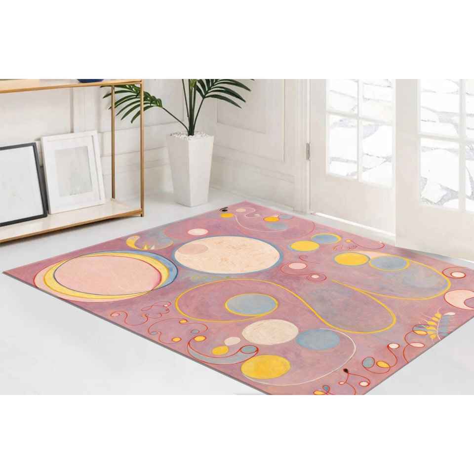 Hilma af Klint Inspired Printed Rug, Boho Pink Reproduction,Luxury Velvet Rug