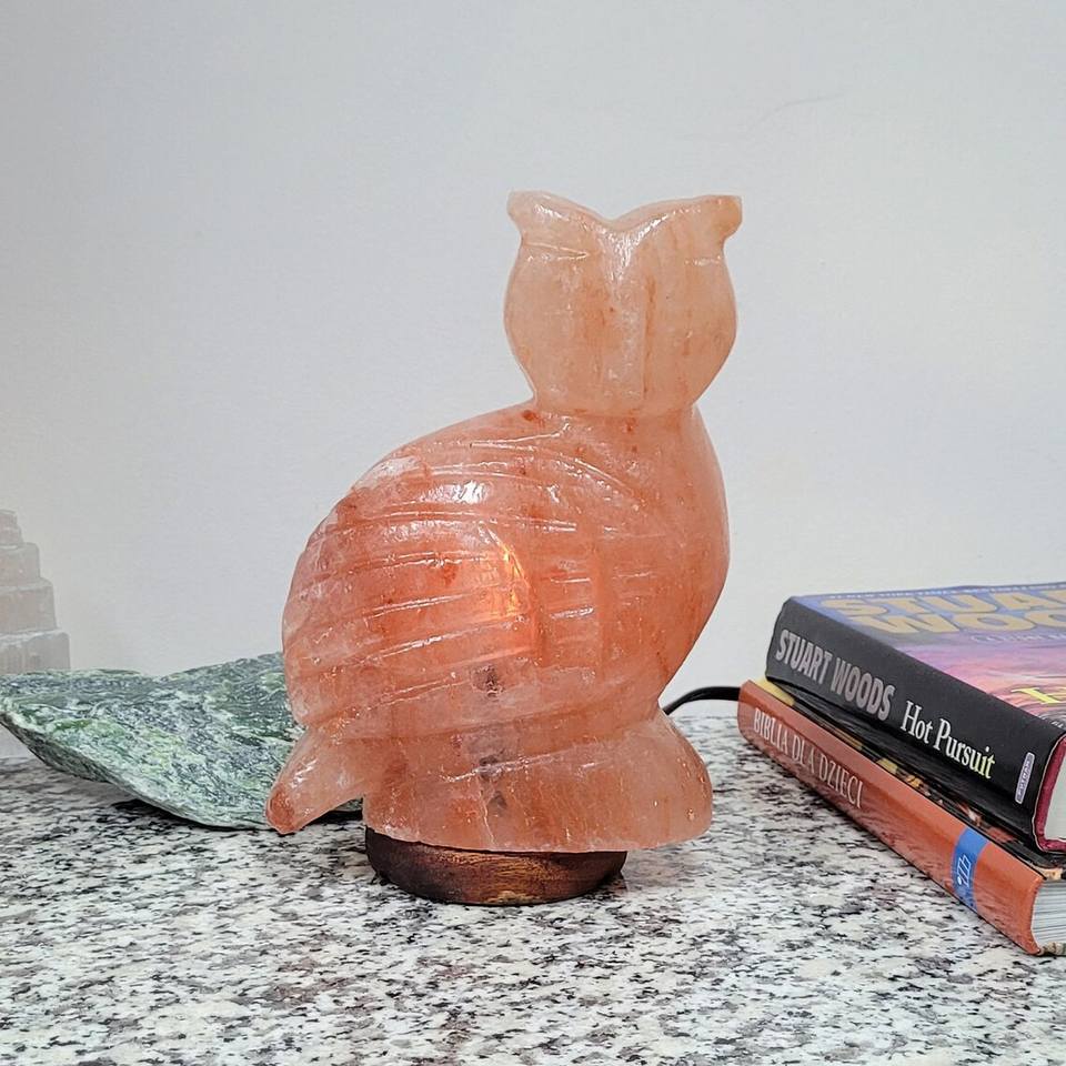 Himalayan Rock Salt Owl Lamp Natural Pink Salt Animal Light Modern Design Fire Resistant for Living Room & Kitchen