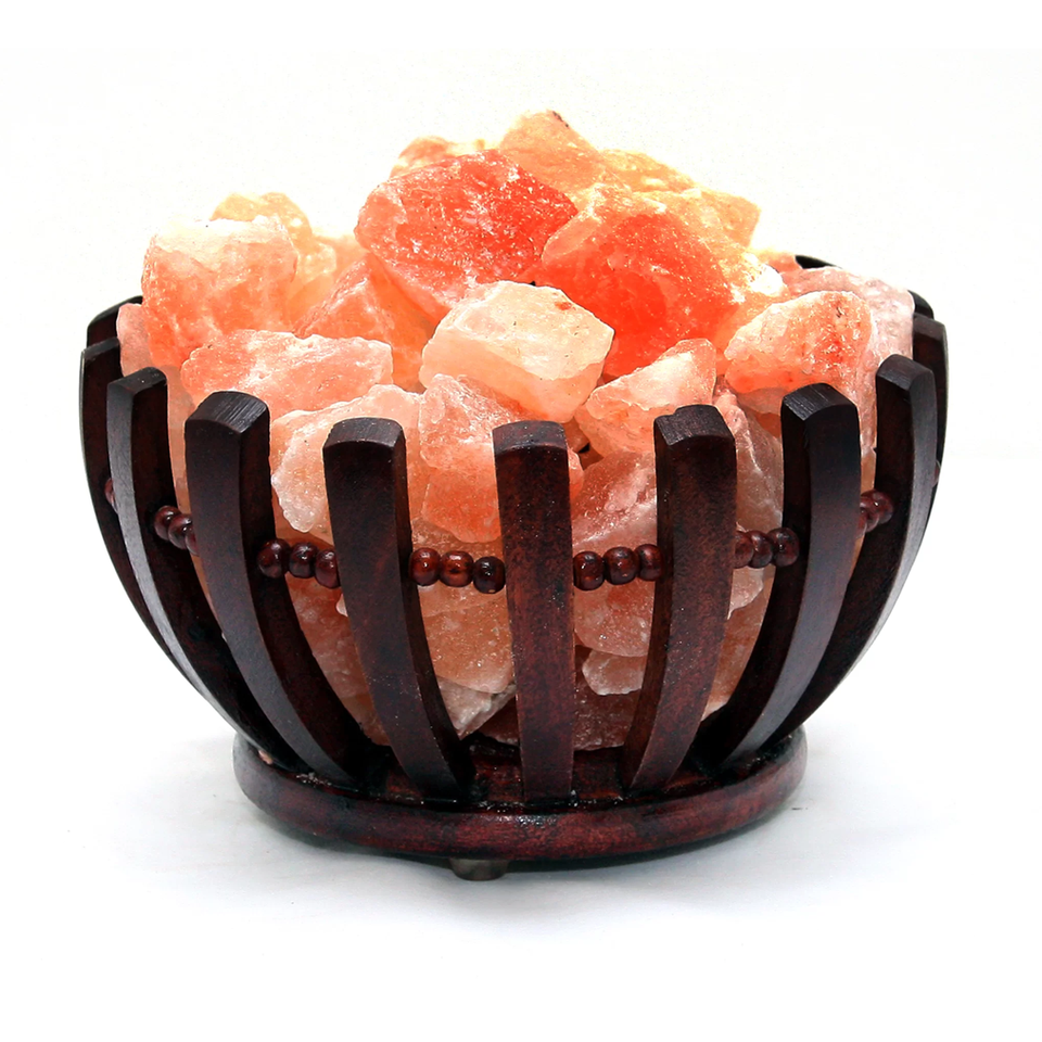 Himalayan Rose Wooden Bowl Shape Baskets Natural Glow Elevating Decor with Salt Lamp and Dream Catcher Touch