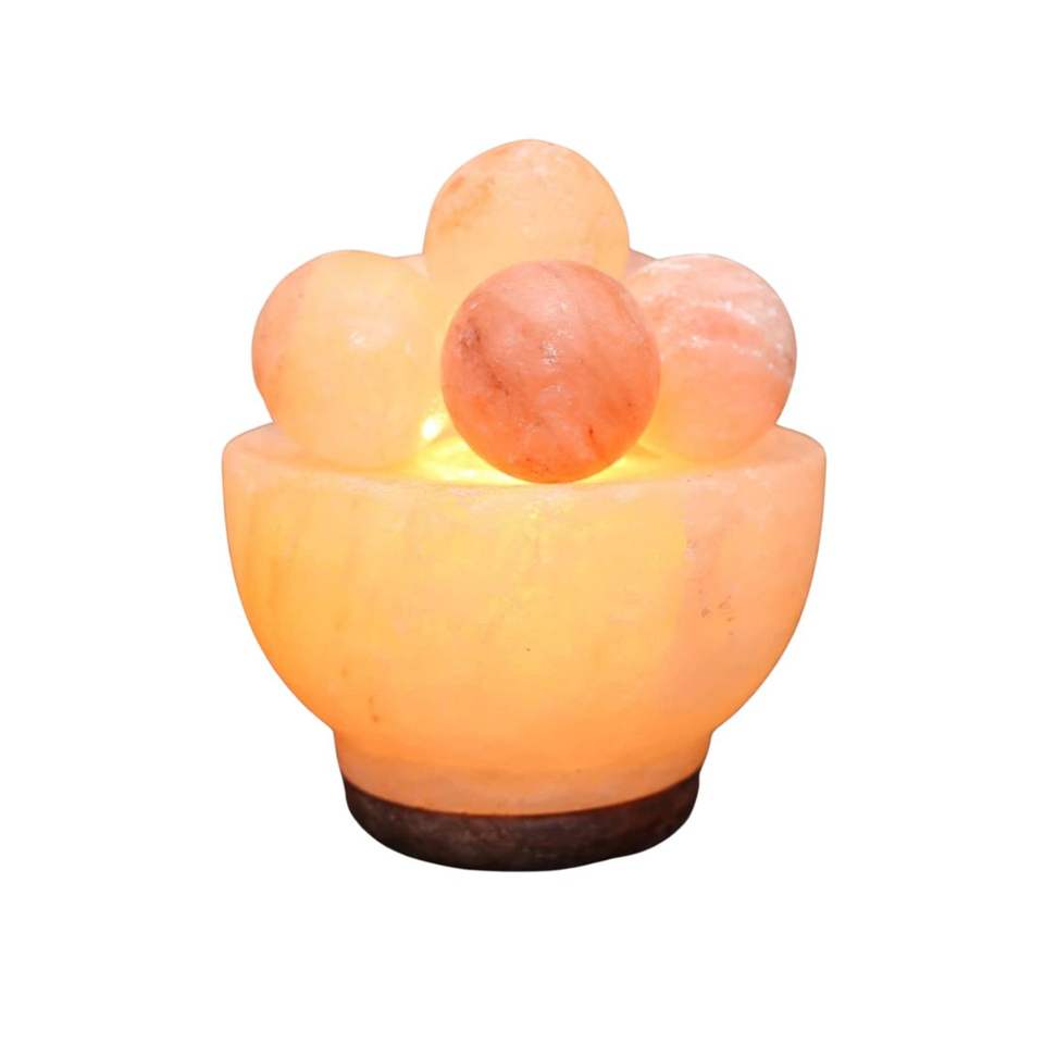 Himalayan Salt Fire Bowl Lamp Therapeutic Round Stones in Pyramid Style Night Light with Relaxing Vibes Natural Crafts Product