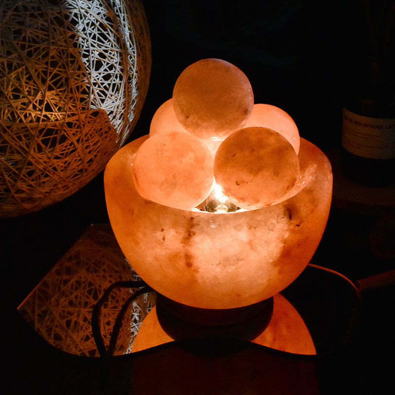 Himalayan Salt Lamps Night Light Pink Wooden Polished Base Fire Bowl Salt Lamp Waterproof Home Decor