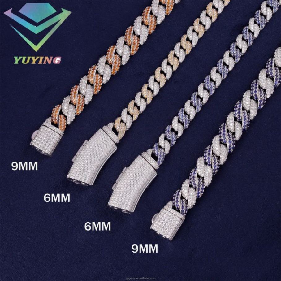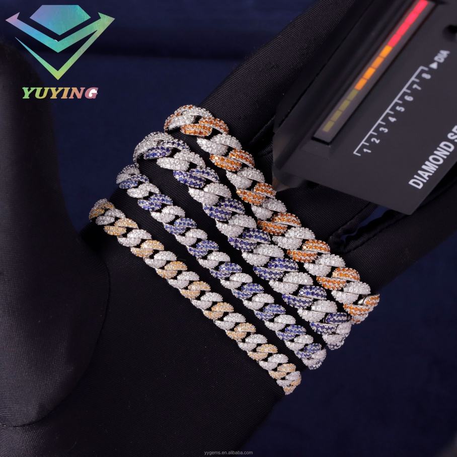 Hip Hop 6mm 9mm Cuban Bracelets White Gold Plated 925 Silver Natural Colorful Diamond Iced Out VVS Moissanite Bracelet for Men