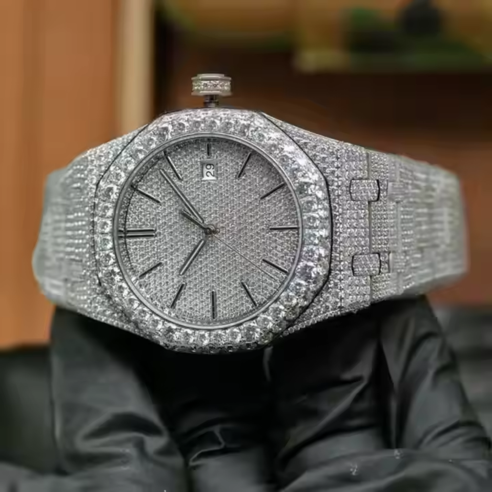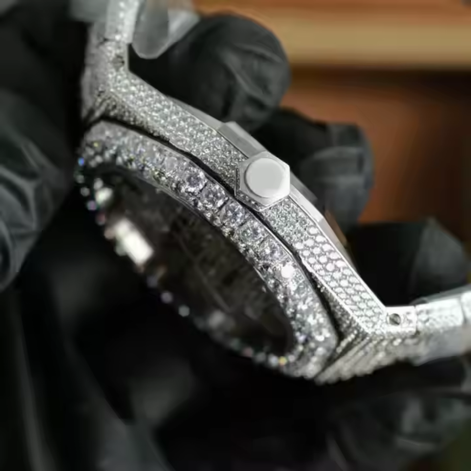 Hip Hop Automatic Movement Mechanical VVS Clarity Moissanite Diamond Studded Iced Out Watches in Wholesale Price Indian Exporter