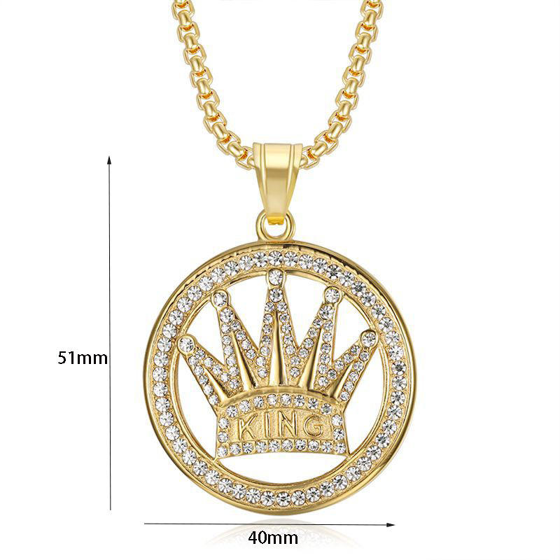 Hip Hop Bar Hollow Crown Kings Male Gold Plated Waterproof Tarnish Free Stainless Steel Fashion Jewelry Pendant Necklace Man Men