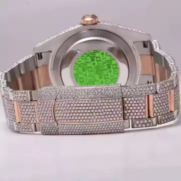 Hip Hop Bussdown Dial Men and Women Iced Out Watch VVS Moissanite Studded Two Tone Rose Gold Luxury Watch for Men and Women.
