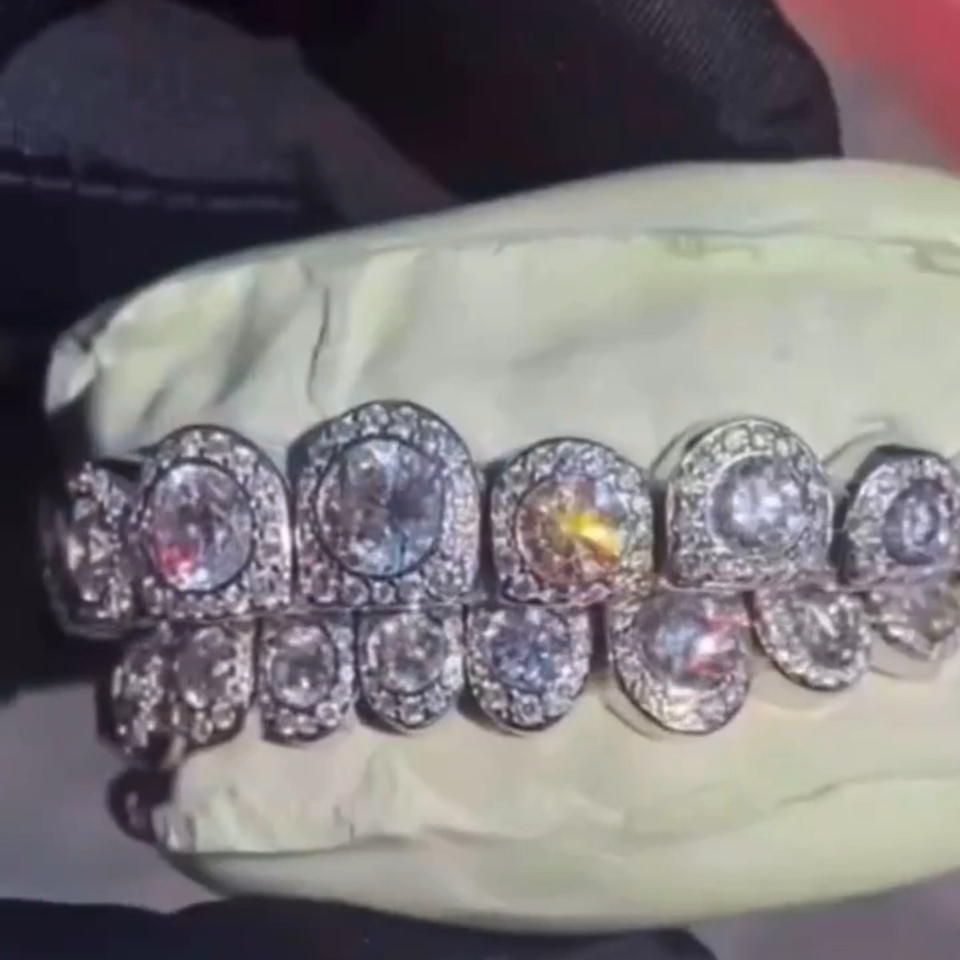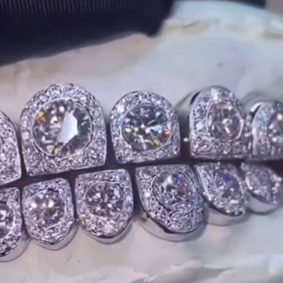 Hip Hop Custom Platinum Plated 925 Sterling Silver Iced Out Moissanite Teeth Grillz Eco-Friendly Trendy Luxury Jewelry
