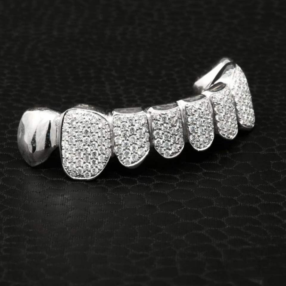 Hip Hop Custom 925 Silver Teeth Grillz Iced Out Lab Grown Moissanite Diamond Third Party Certified Silver Jewelry
