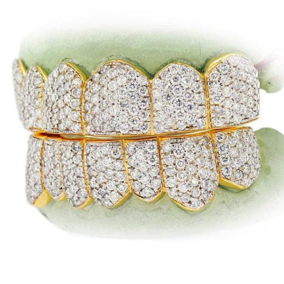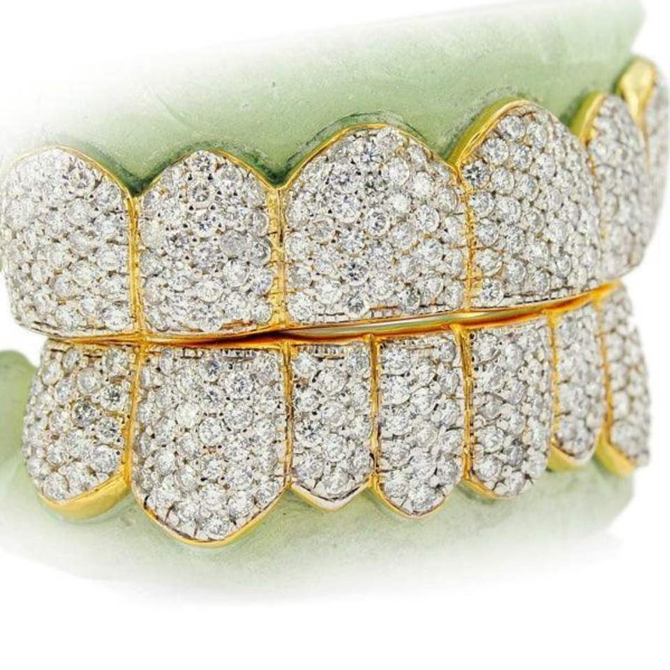 Hip Hop Custom 925 Sterling Silver Lab Grown Diamond & Moissanite Teeth Grillz 14 Teeth Hand Prong Set Unisex 7 Top 7 Bottom
