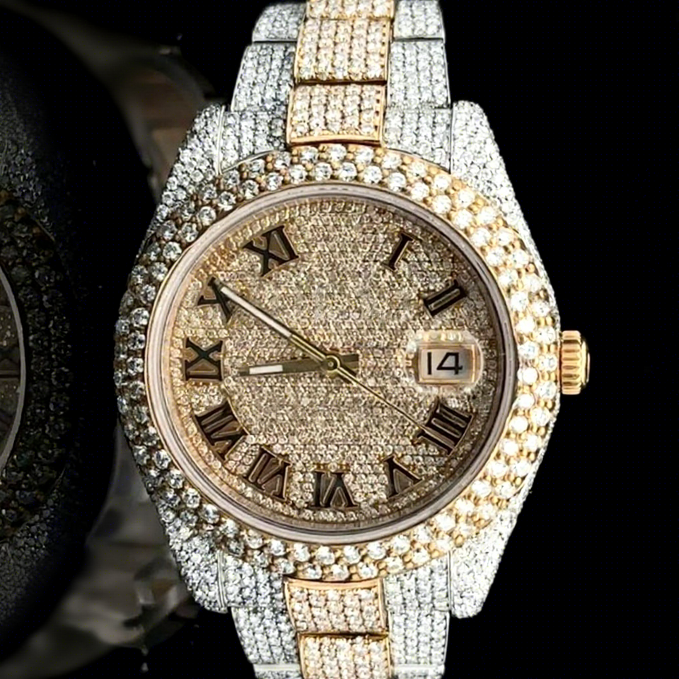 Hip Hop Custom Stainless Steel Vvs Iced Out Gold Diamond Moissanite Bling Glass Round Dial 10 Bar Water Resistant Watch Men