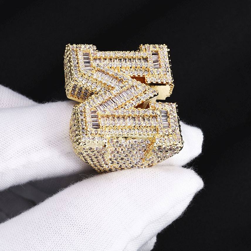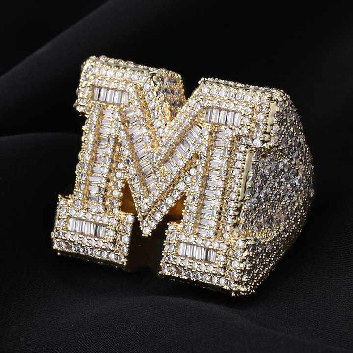 Hip Hop Customization Iced Out 18K Gold Plated Initial Letter original 14k Gold VVS Moissanite Diamond Men's Ring For Unisex