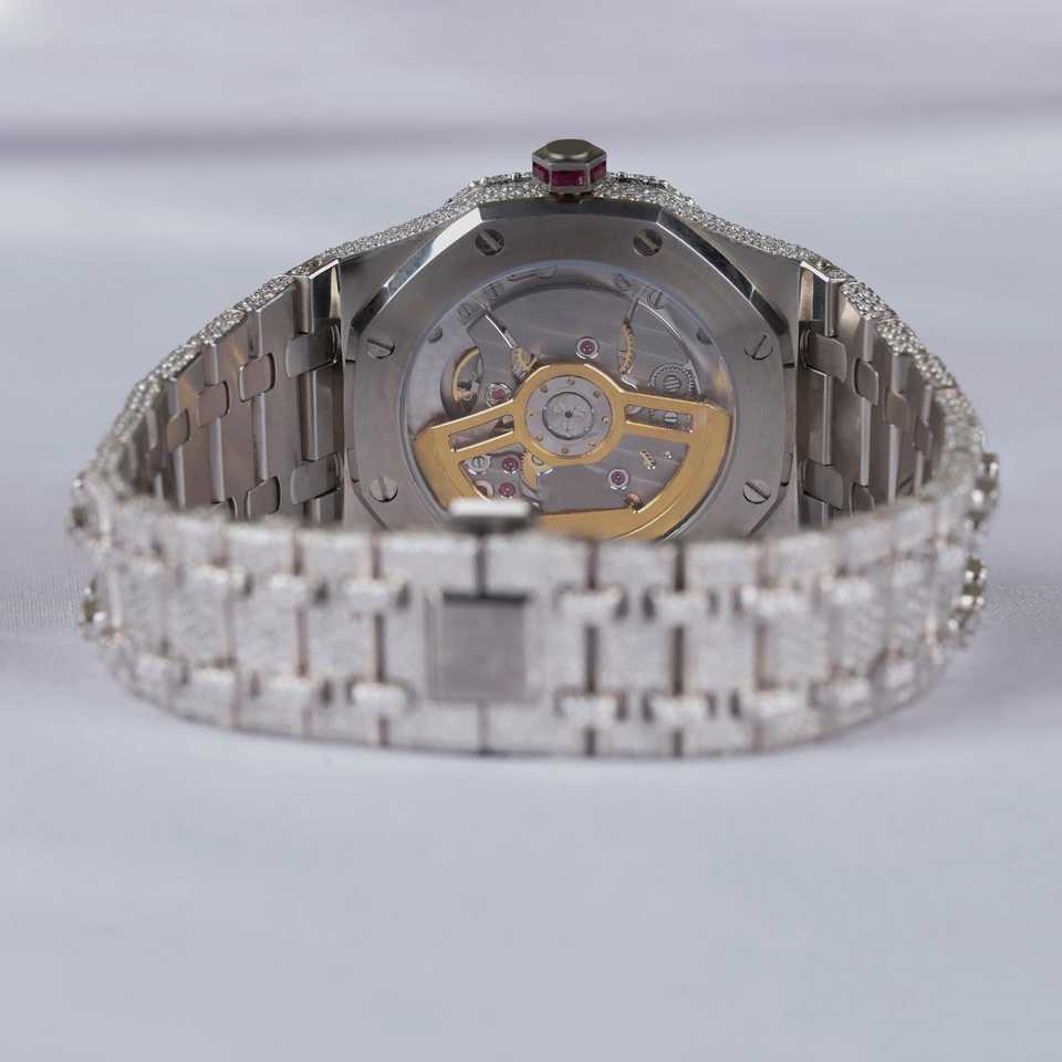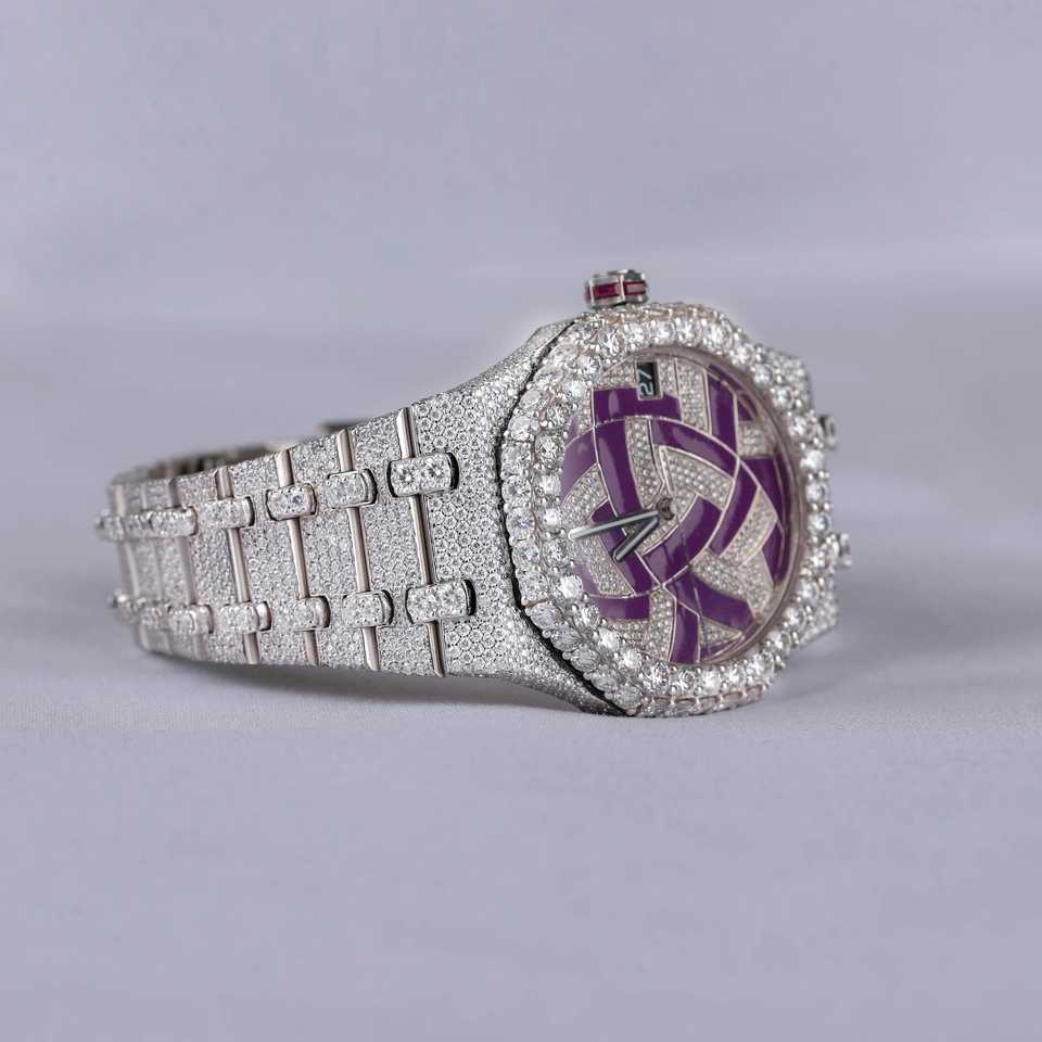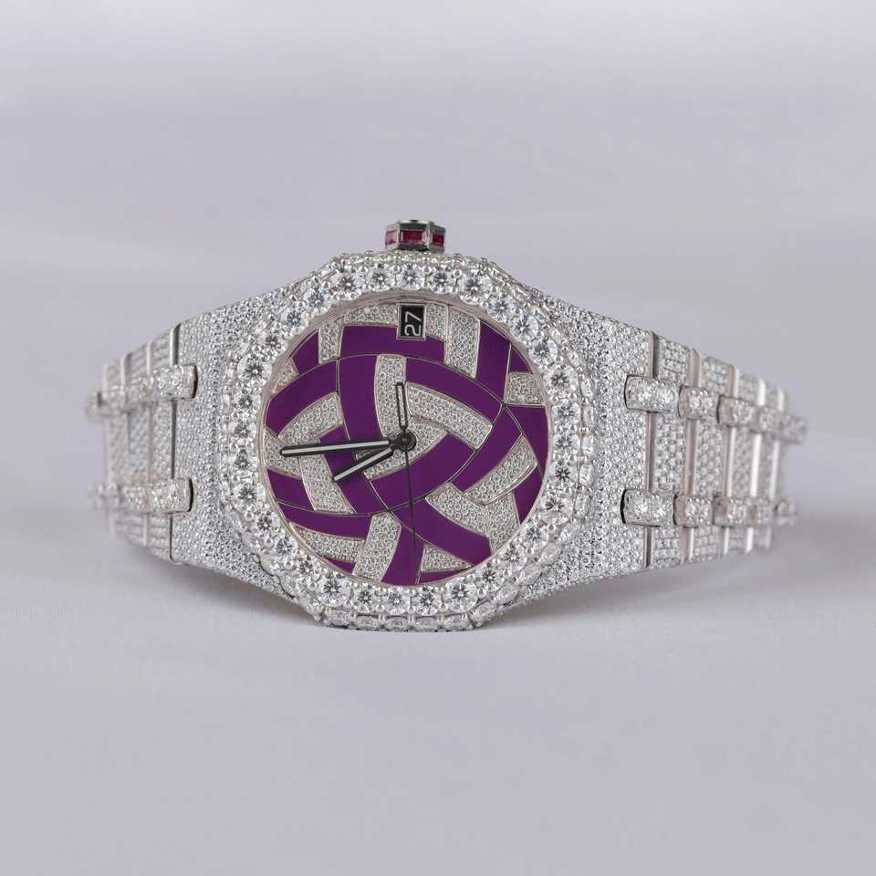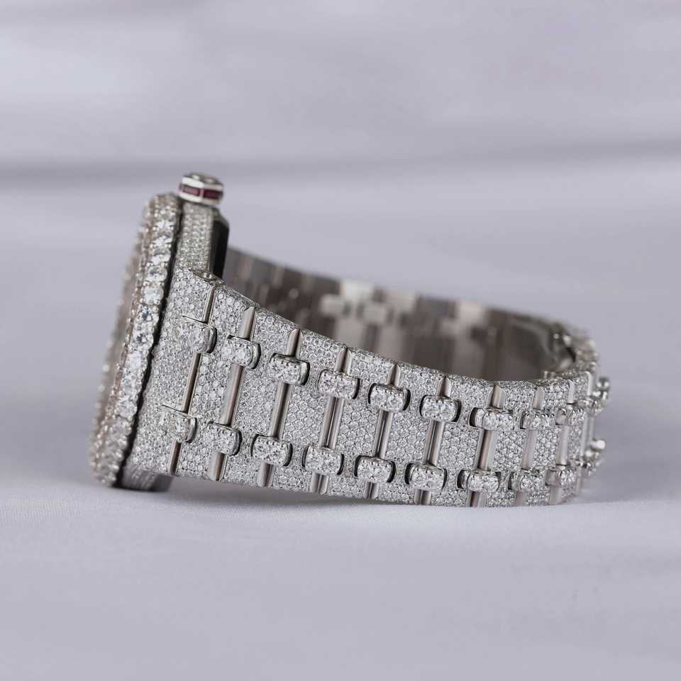 Hip Hop Diamond Auto Date Stainless Steel Lab Grown Diamond Wrist Watch Analog Diamond Studded Watch for Men
