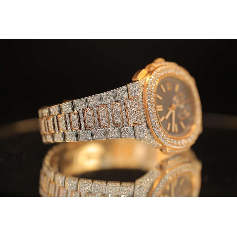 Hip Hop Diamond Stainless Steel Leather Analog Glass Unisex Watch Bezel Customized VVS Moissanite Iced Logo Luxury Mechanical
