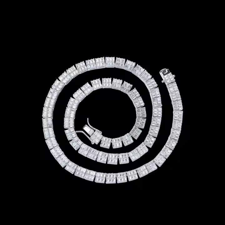 Hip Hop Emerald Cut Moissanite Diamond Chain Necklace High Clarity Luxury Jewelry Suitable For Men And Women Trend Fashion